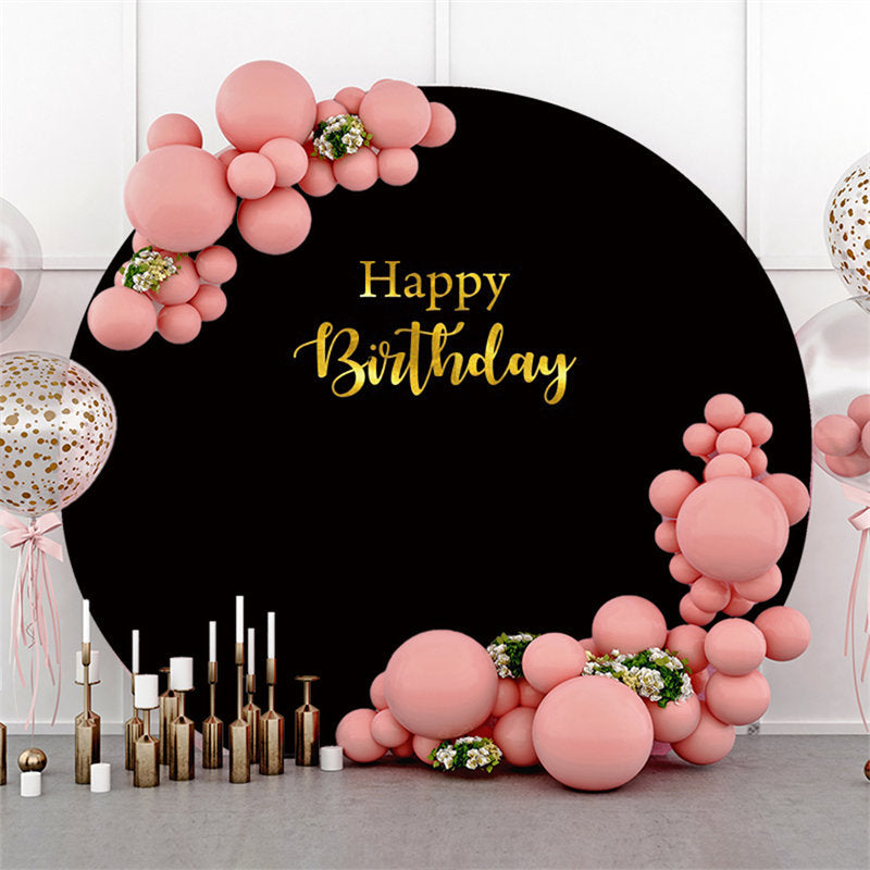 Backdorp rond joyeux anniversaire en or noir pur pour la fête