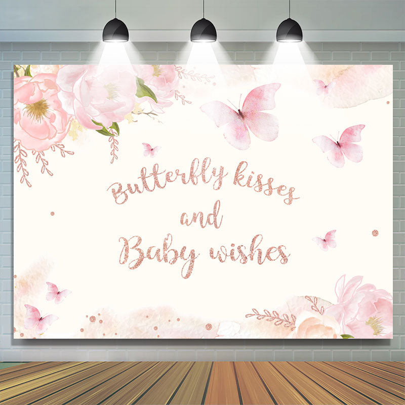 Baisers de papillons et toile de fond souhaitée par bébé pour la douche de bébé