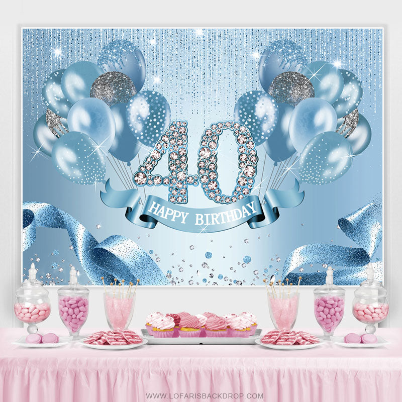 Ballon bleu clair Ribbion Joyeux 40e anniversaire Toile de fond