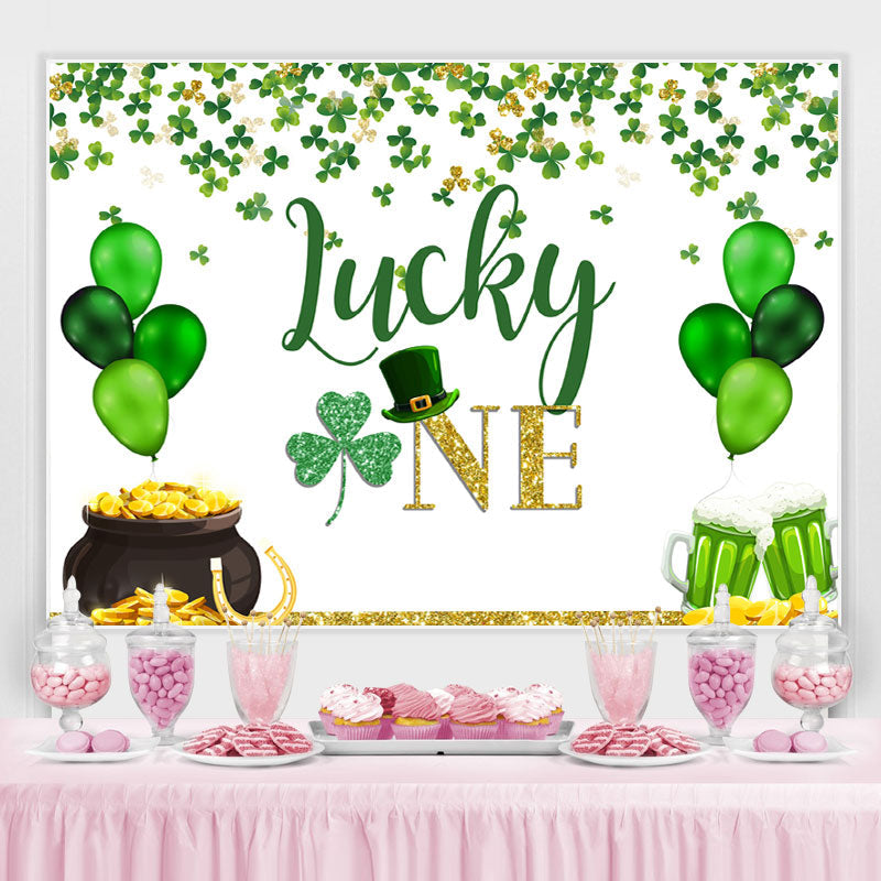 Ballons verts et trèfle Lucky One Birthday Backdrop
