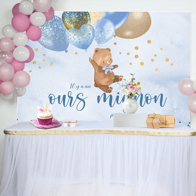 Bleu des ballons Mignon Nounours Ours Bébé Douche Toile de fond