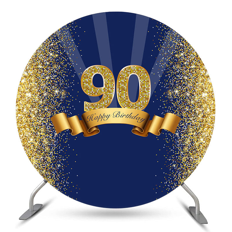 Blue Glitter Gold Round Joyeux 90e anniversaire Toile de fond