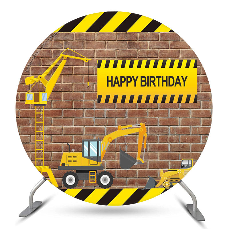 Camion Brique Joyeux Anniversaire Toile de Fond Ronde Pour garçon