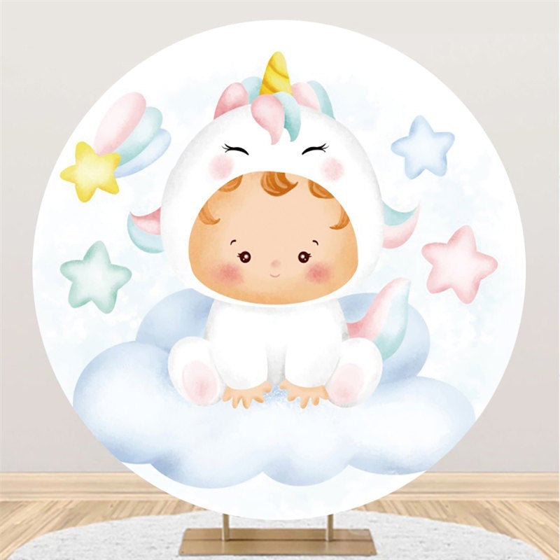 Cercle Petite Étoile Et Nuage Licorne Baby Shower Toile De Fond
