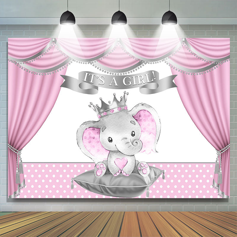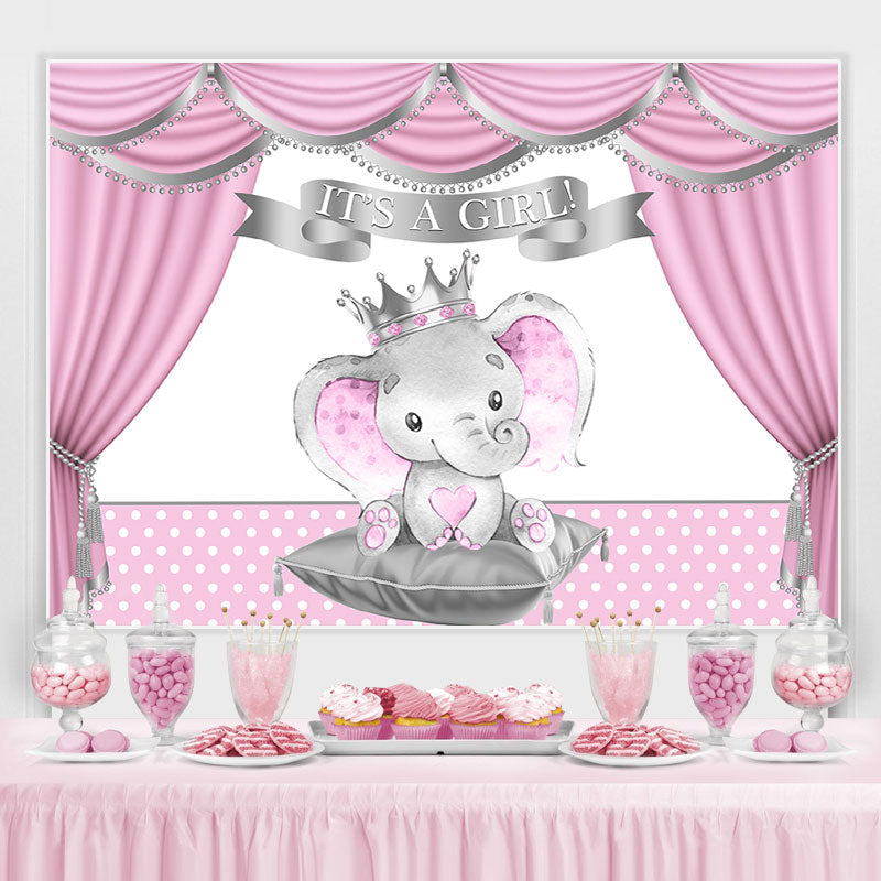 C'est une fille! Toile de fond de douche de bébé éléphant bébé