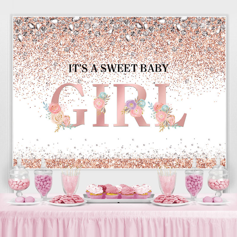 C'est une toile de fond à paillettes florales roses pour bébé fille douce pour baby shower
