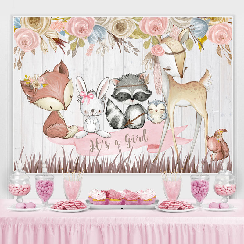C'est une toile de fond d'animal mignon floral rose fille pour baby shower