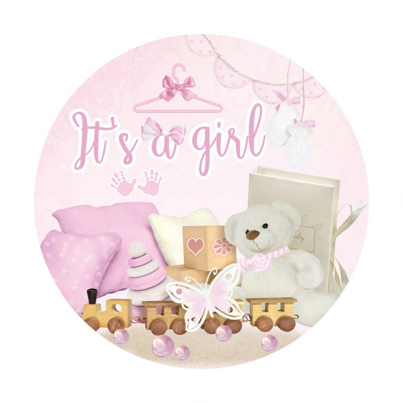 C'est une toile de fond de cercle de fête de naissance rose pour fille