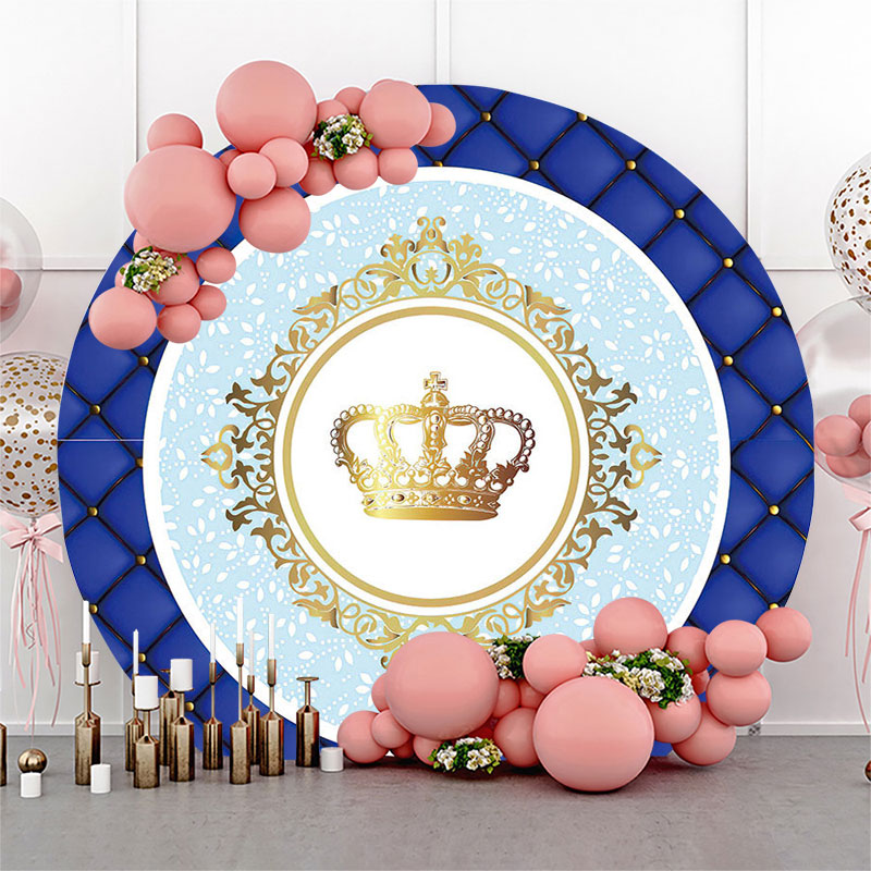Couverture de toile de fond ronde de fête d'anniversaire bleu couronne d'or
