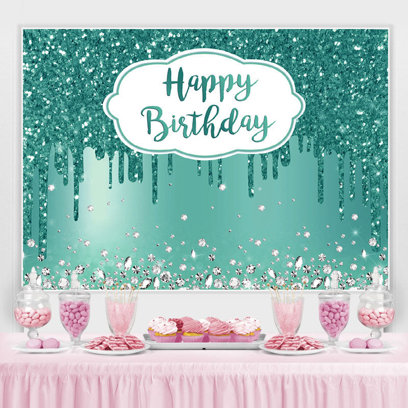 Cyan Diamonds Glitter Bokeh Joyeux Anniversaire Toile de Fond