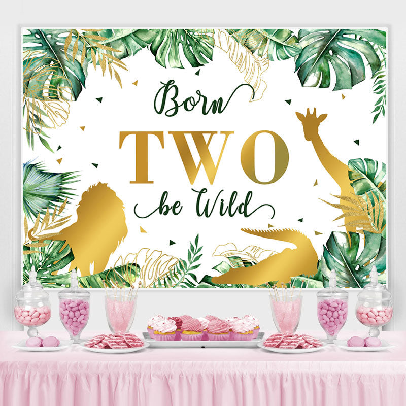Feuilles et animaux dorés 2e toile de fond joyeux anniversaire