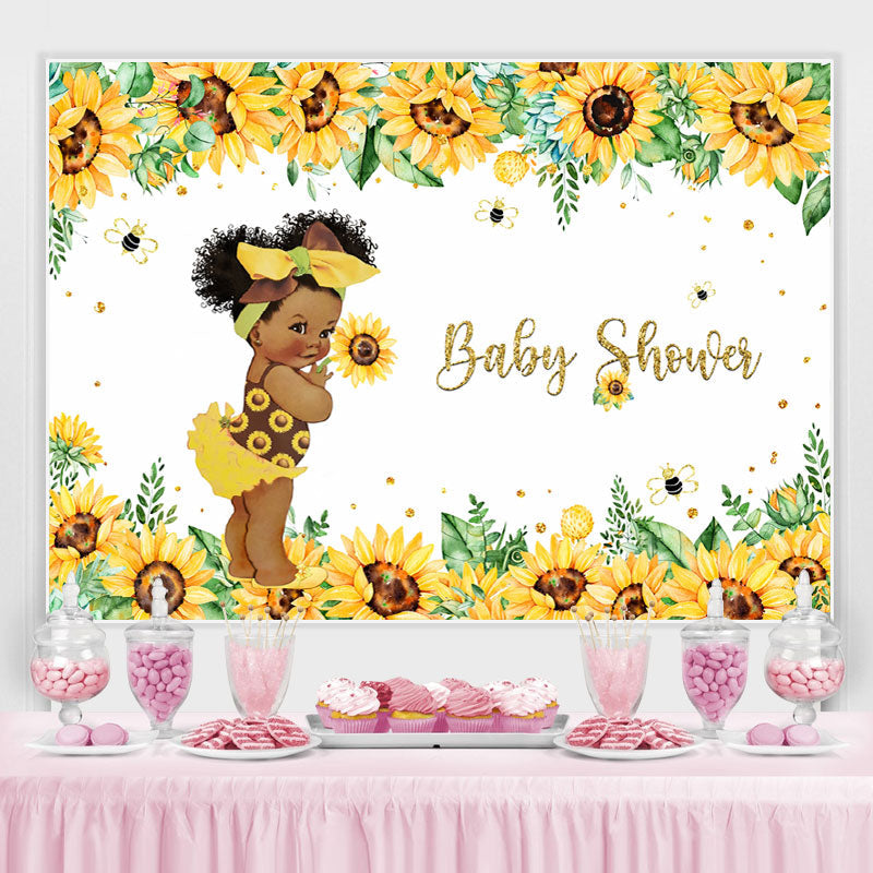 Fille bébé douche tournesols abeille paillettes fête toile de fond