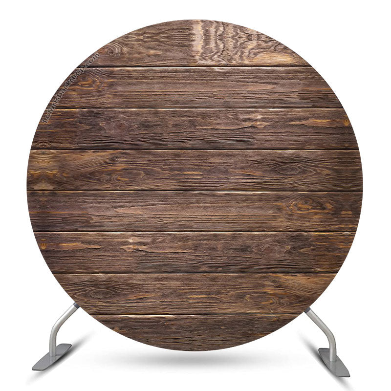 Fond d'anniversaire rond de mur de texture de bois brun foncé