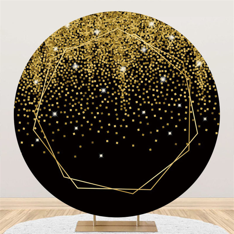 Fond de cercle de joyeux anniversaire de thème noir d'or de scintillement