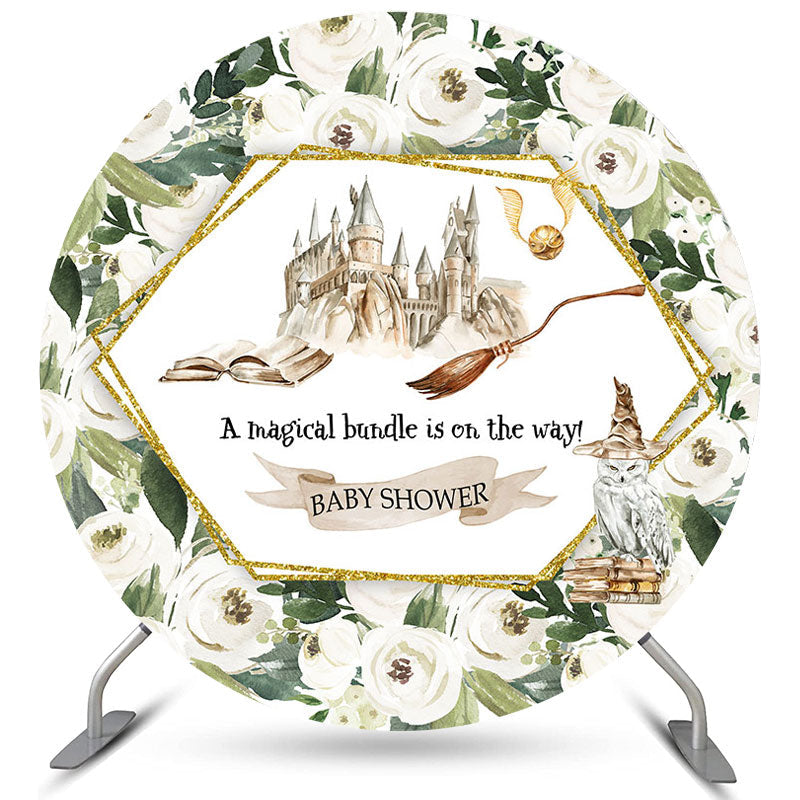 Fond de fête de naissance rond à feuilles vertes florales blanches