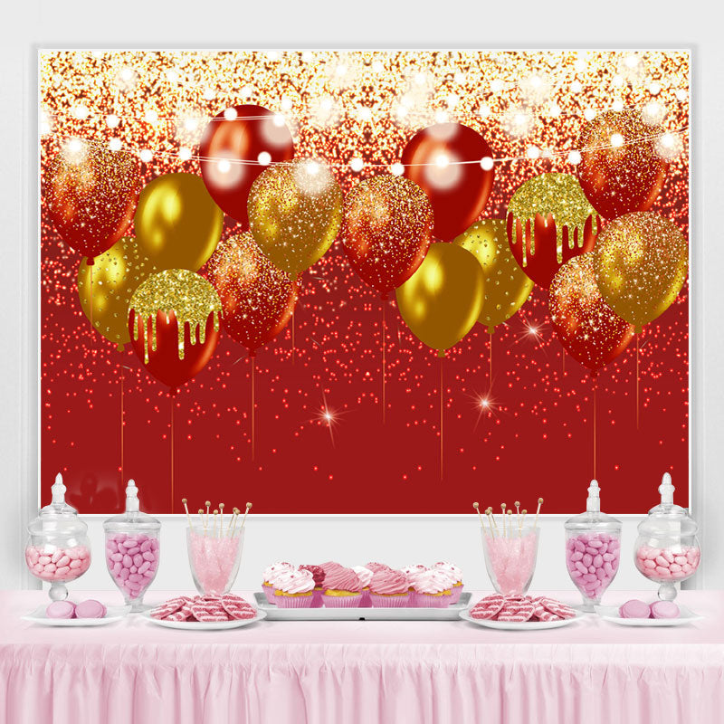 Fond de joyeux anniversaire ballons paillettes rouge et or