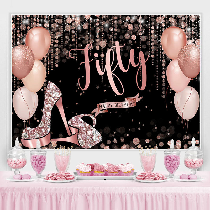 Fond de paillettes de ballon joyeux 50e anniversaire en or rose