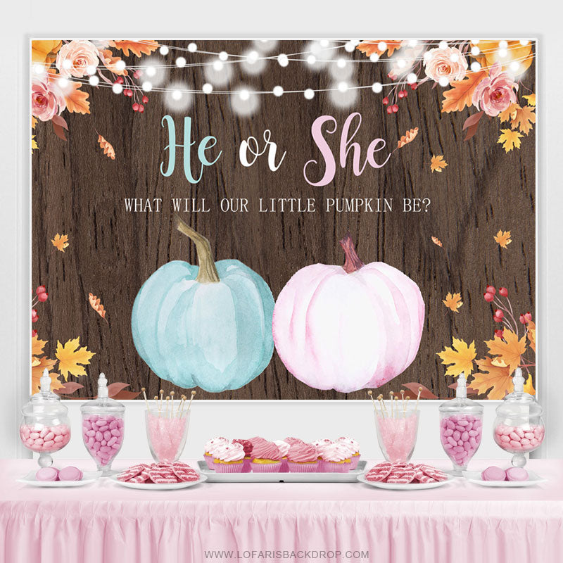 Il ou elle bleu rose citrouille baby shower toile de fond en bois