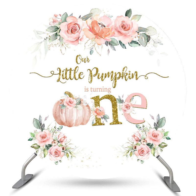 La petite citrouille tourne une toile de fond d'anniversaire ronde