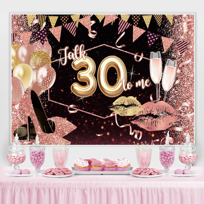 Lèvres scintillantes et ballons Joyeux 30e anniversaire Toile de fond