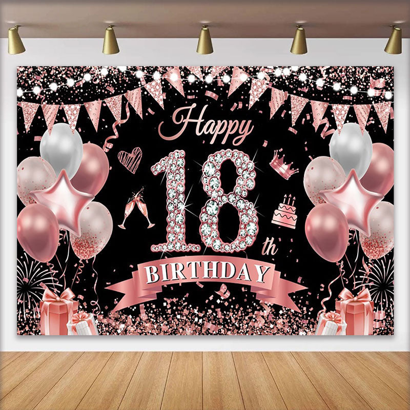 Lofaris Fond 18 ans Or Rose Chiffres Diamant et Ballons Roses Anniversaire
