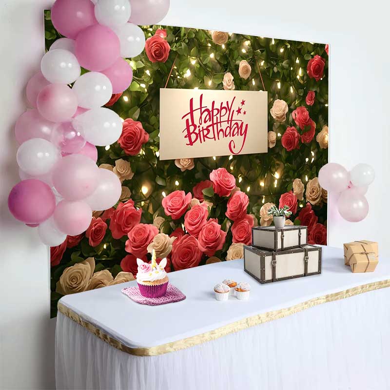 Lofaris Fond Anniversaire Mur Roses Rouges Blanches, Arrière-plan Fête Femme Guirlandes Lumineuses