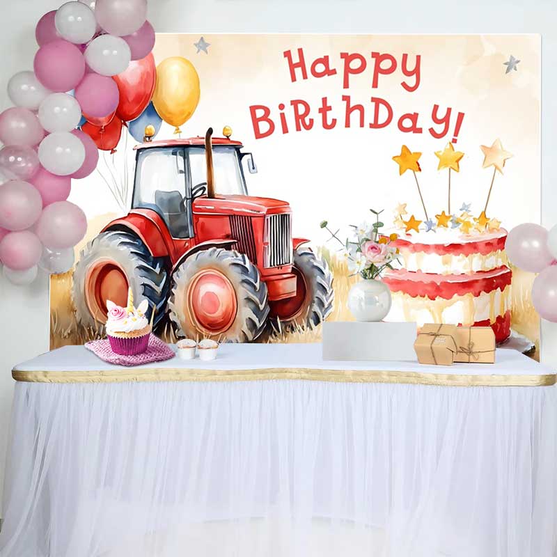 Lofaris Fond Anniversaire Tracteur Rouge Gâteau Étoile, Arrière-plan Photographie Fête Garçons Ballons