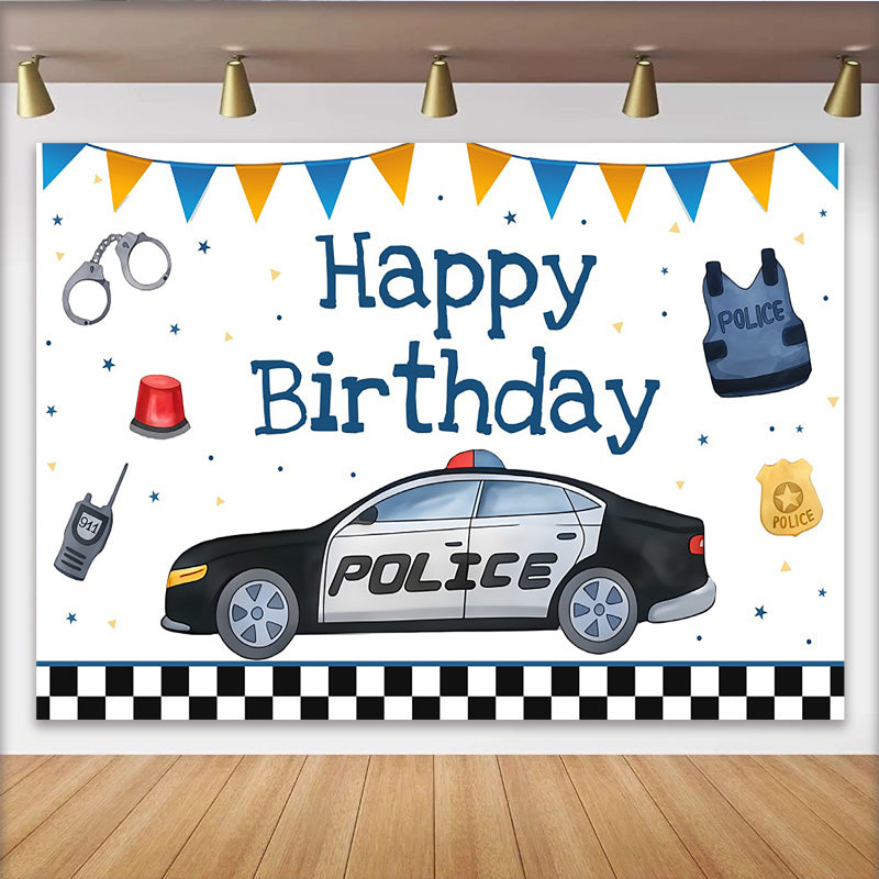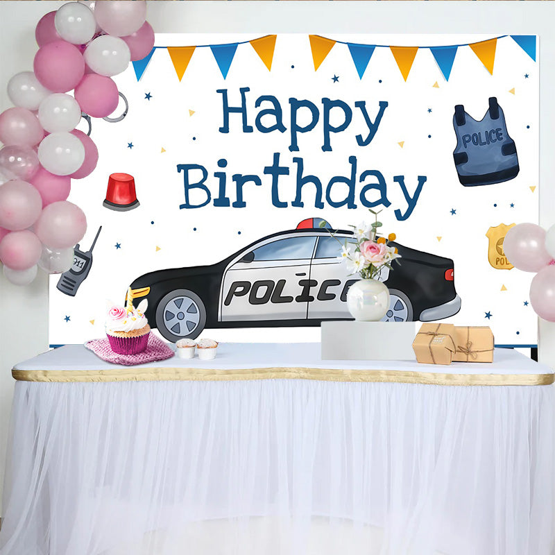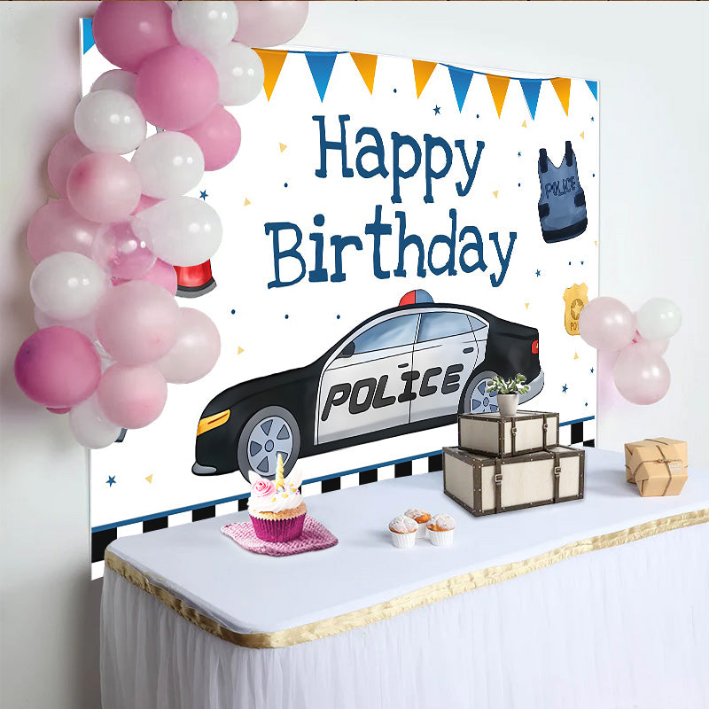 Lofaris Toile de Fond Anniversaire Voiture de Police et Équipement, Décoration de Fête pour Garçon