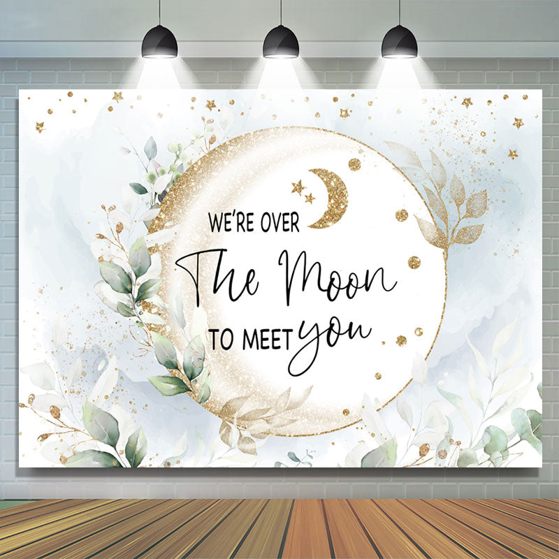 Lune Or Glitter Feuilles Boho Bébé Douche Toile de Fond