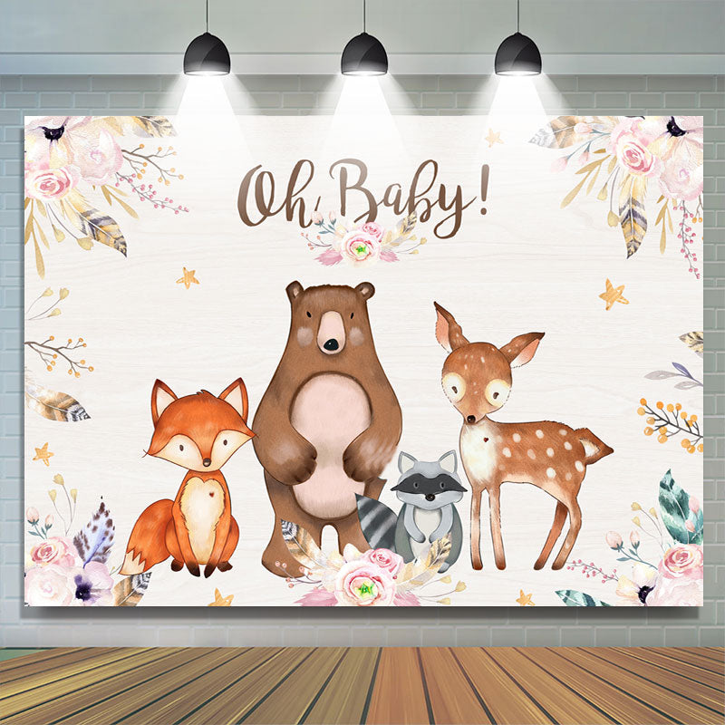 Oh Baby Pink Floral Baby Animals Toile de fond de douche de bébé