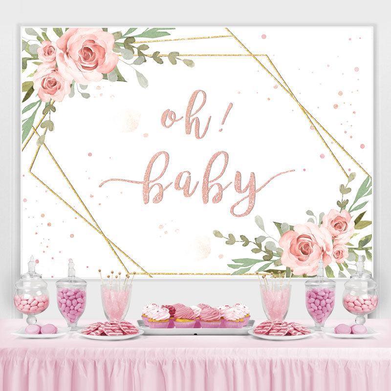 Oh bébé rose rose et cadre doré toile de fond de douche de bébé
