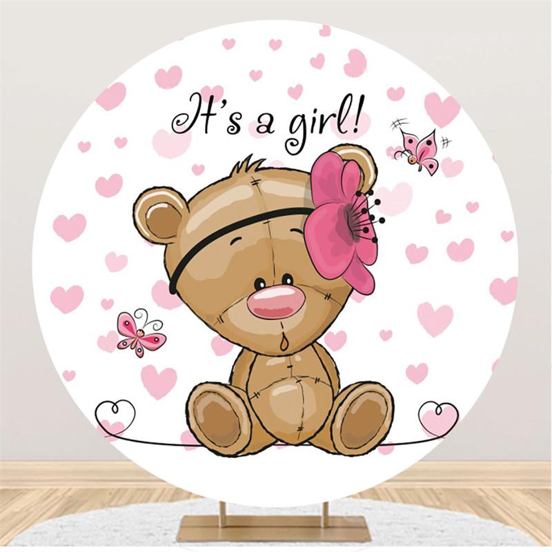 Ours papillon rose rond c'est une toile de fond de fête de naissance pour fille