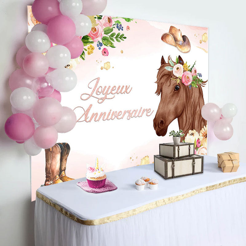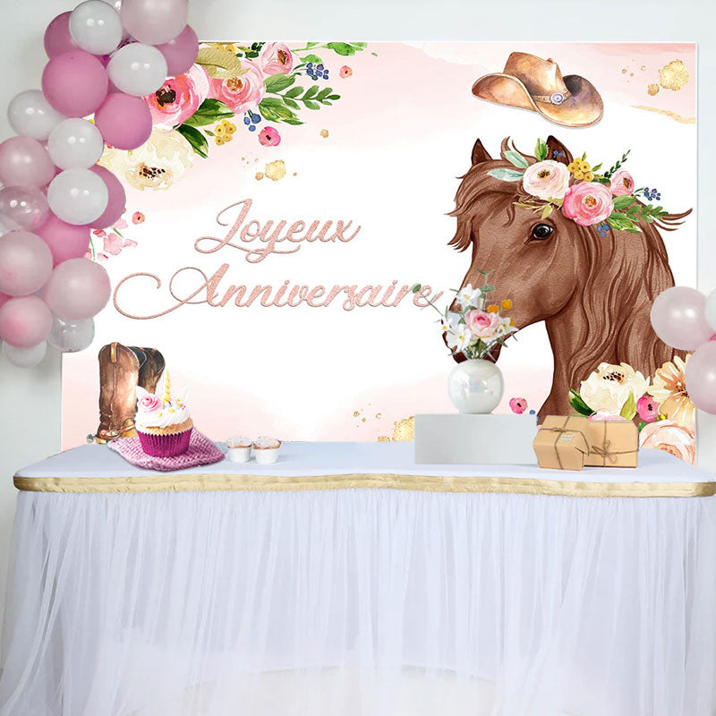Rose Floral et Cheval Cow-boy Thème Anniversaire Toile de fond