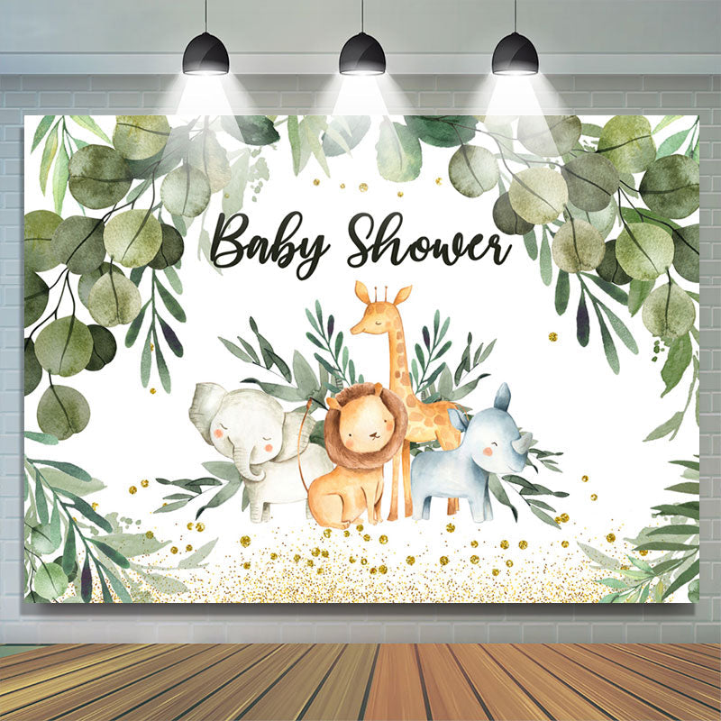 Safari vert jungle feuilles mignon bébé douche toile de fond