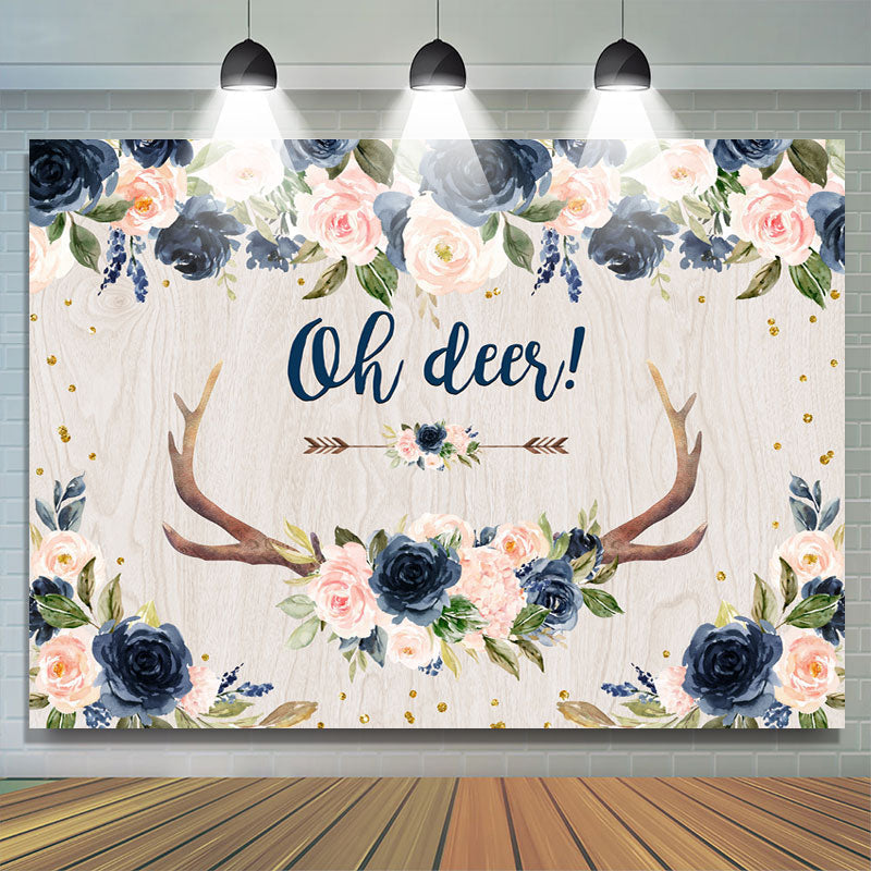 Toile de fond bleu marine Floral Oh Deer Flower Baby Shower
