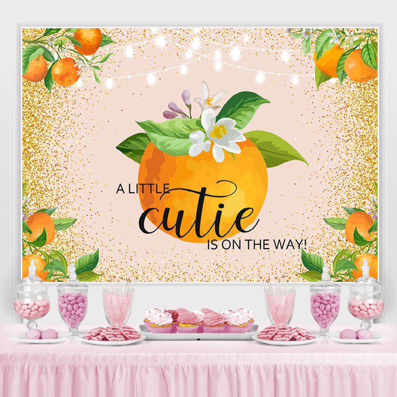 Toile de fond de douche de bébé à paillettes dorées florales et orange
