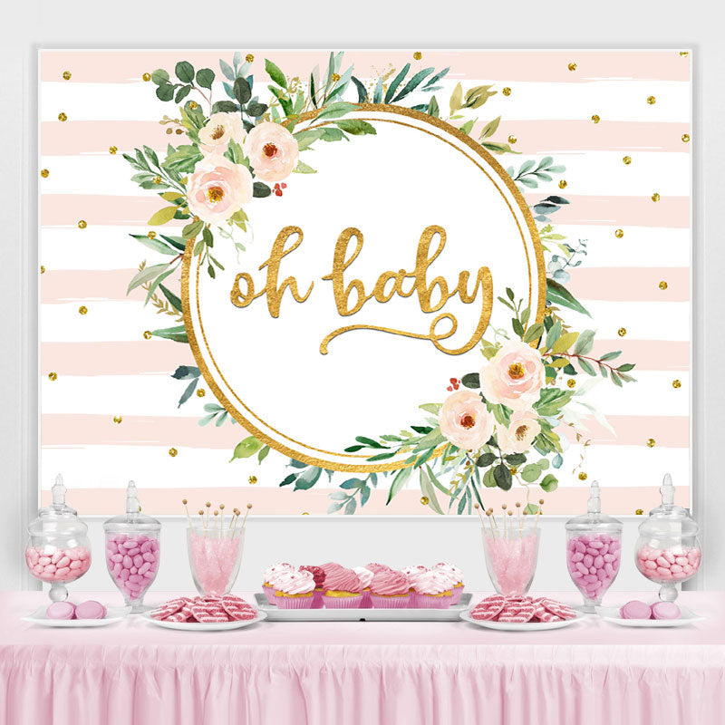 Toile de fond de douche de bébé à pois dorés à rayures roses et blanches