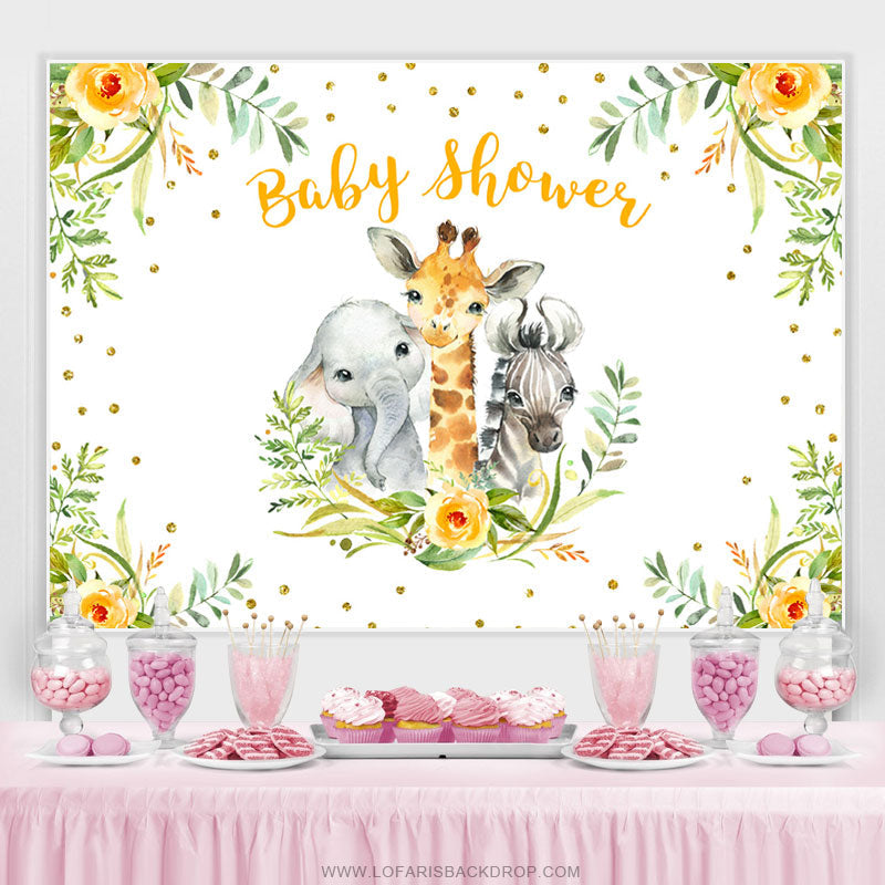 Toile de fond de douche de bébé animaux feuilles vertes florales jaunes