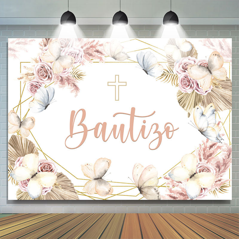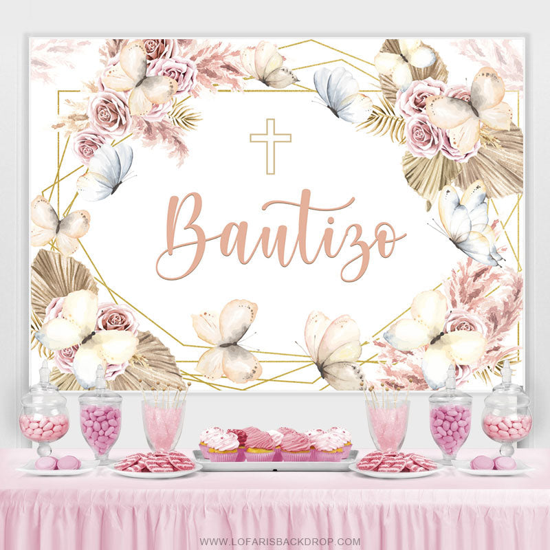 Toile de fond de douche de bébé Bautizo floral rose clair kaki