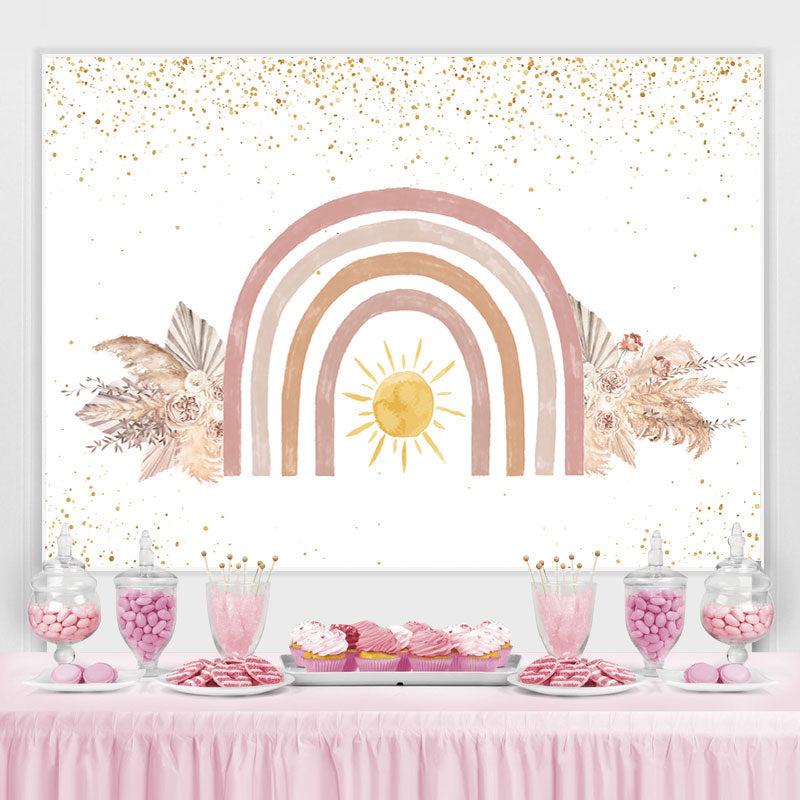 Toile de fond de douche de bébé floral et soleil scintillant pour fille