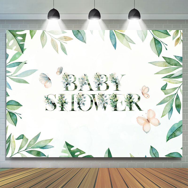 Toile de fond de douche de bébé papillon feuilles vertes pour la fête