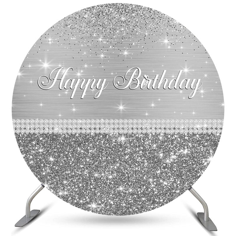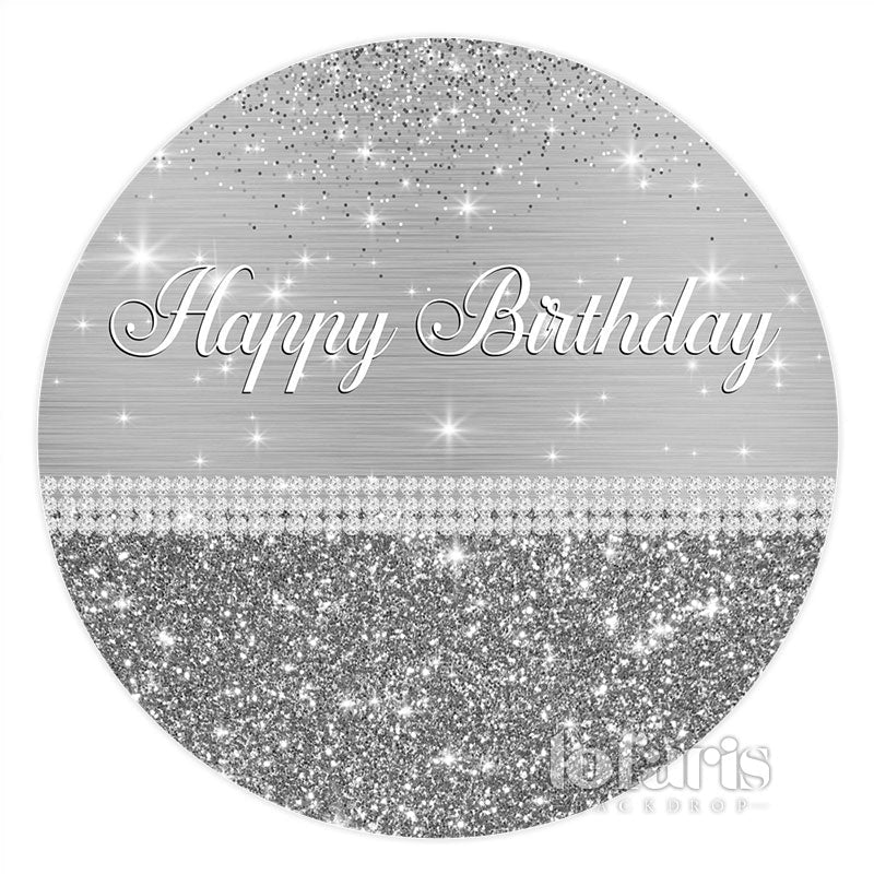 Toile de fond de joyeux anniversaire de cercle de paillettes gris argenté
