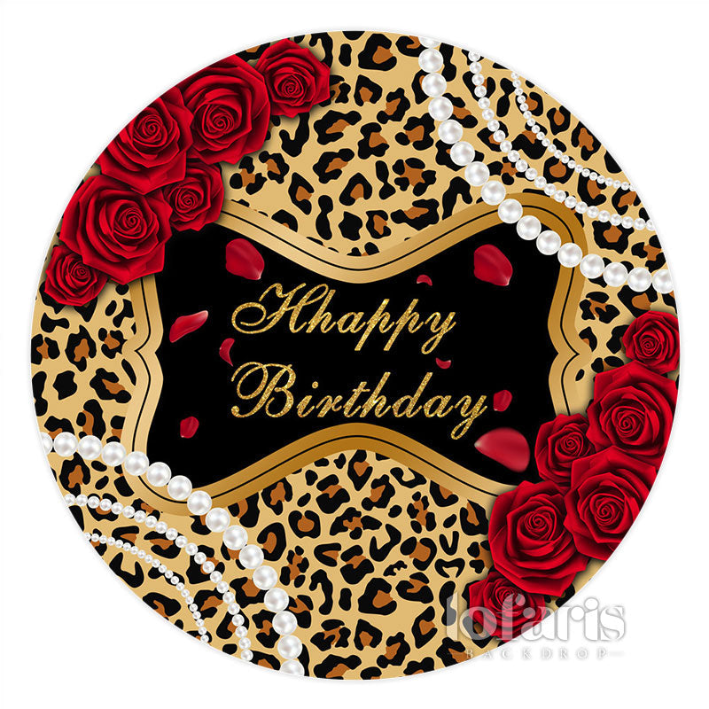 Toile de fond de joyeux anniversaire de cercle de perles florales léopard