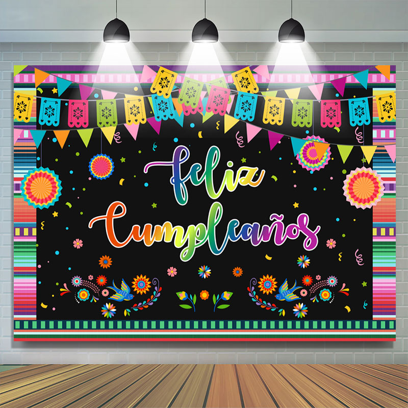 Toile de fond de joyeux anniversaire mexicain Fiesta Flower