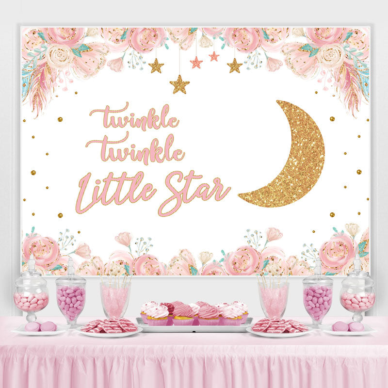Toile de fond d'étoiles de lune florale et dorée rose pour les enfants