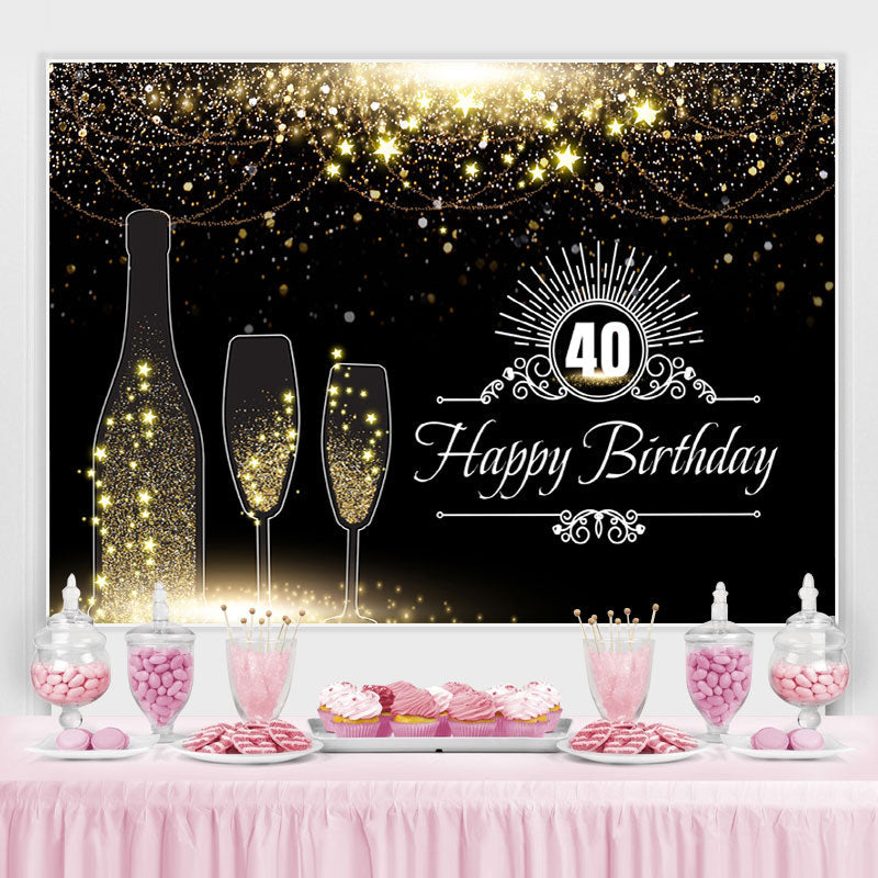 Toile de fond du 40e anniversaire des étoiles scintillantes noires et dorées