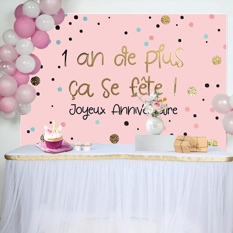 Toile de fond heureux anniversaire rose Polka Points confettis