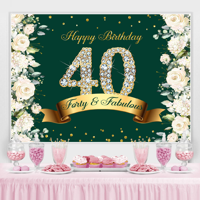 Toile de fond joyeux 40e anniversaire floral et vert scintillant
