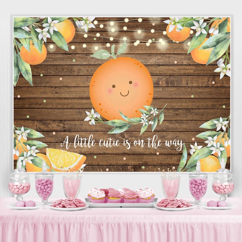 Toile de fond orange en bois rustique Cutie pour baby shower