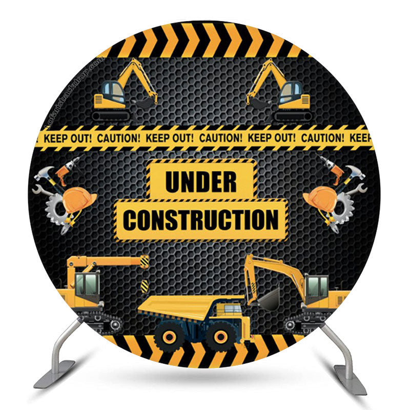 Toile de fond ronde d'anniversaire d'excavatrice en construction